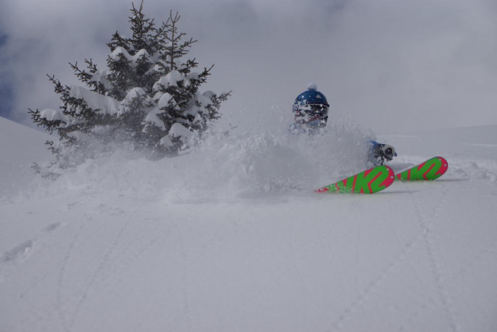 Les rares jours de grosse pow, je prend mes K2 Shreditor en 169 et je pars avec mon père dans la poudreuse des 7 Laux. Même si je préfère rider les parks, je me fait plaisir quand la poudre est légère et qu’elle remonte jusqu’au visage !